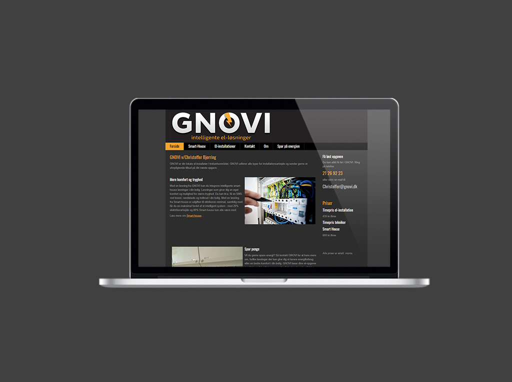 GNOVI er en fantastisk elektriker i Børkop, som laver alle former for elinstallationer, herunder også Smarthouse installationer. Jeg har hjulpet med nogle små rettelser på hjemmesiden, samt tilretning af logo.